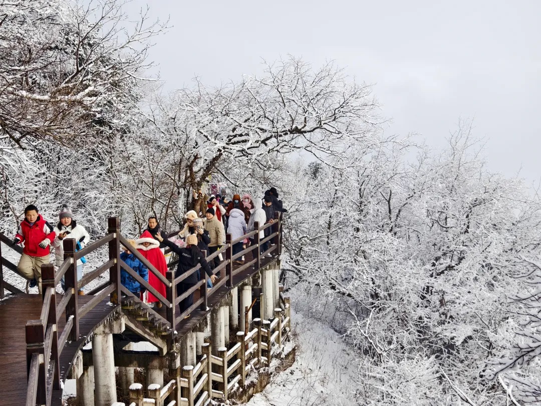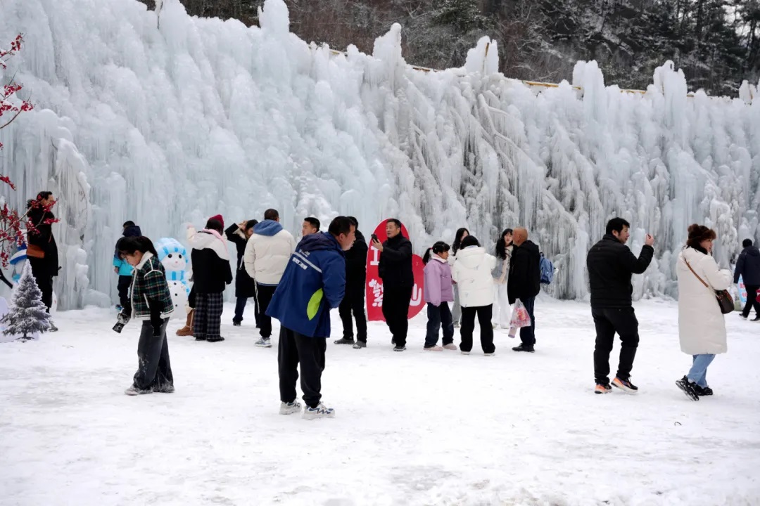 留坝县打造紫柏山冰雪童话世界,搭建人工冰川景观打卡项目,开展打雪仗、堆雪人、亲子互动等趣味小游戏。