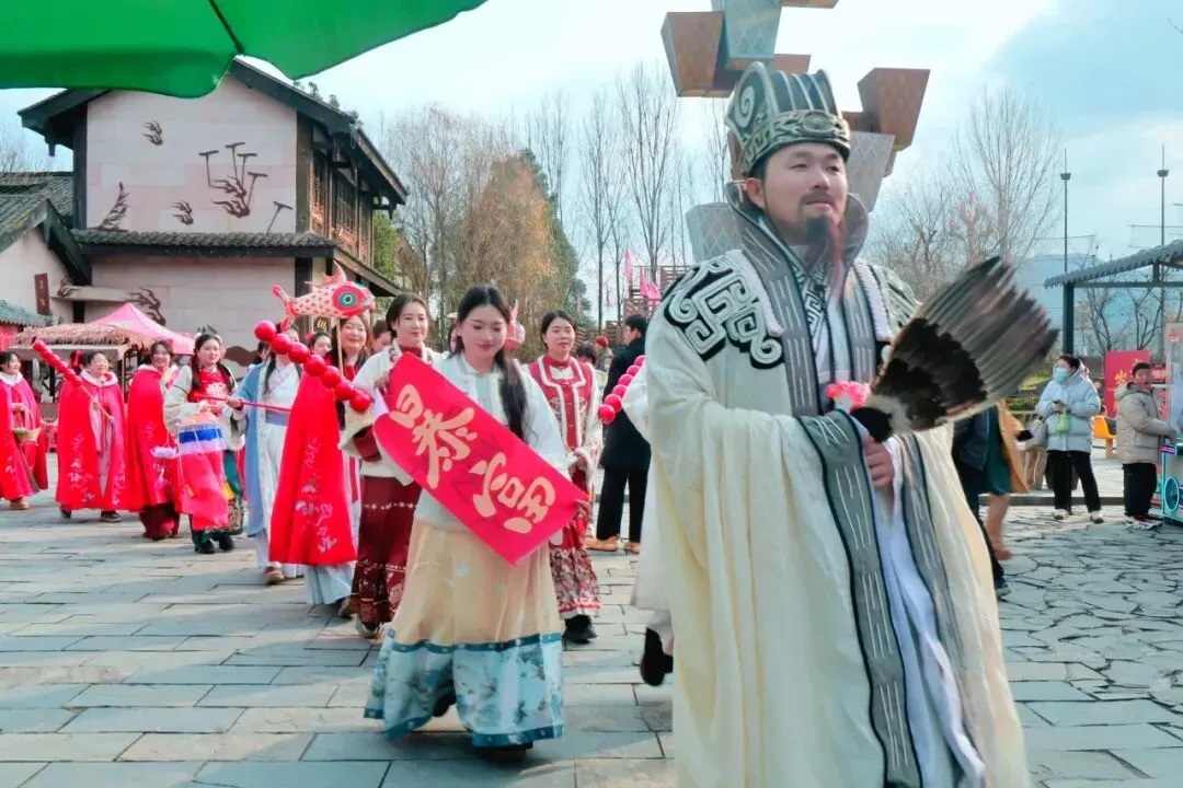 勉县诸葛古镇举办“汉风盈古镇,河灯寄远思”迎新春系列活动,开设非遗匠心集市,游客可亲手体验拓印技艺、挑战传统投壶、制作精美的苗银冰箱贴;汉风巡游,NPC与游客亲切互动、合影打卡;夜间举行河灯祈愿,游客书写祝福,点亮河灯。