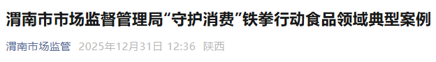 2025年,渭南市市场监管局聚焦消费领域人民群众反映强烈、社会危害性突出的问题,深入开展了“守护消费”铁拳行动,严厉查处了一批违法案件。为强化警示、震慑违法行为,现将部分食品领域典型案例公布如下: