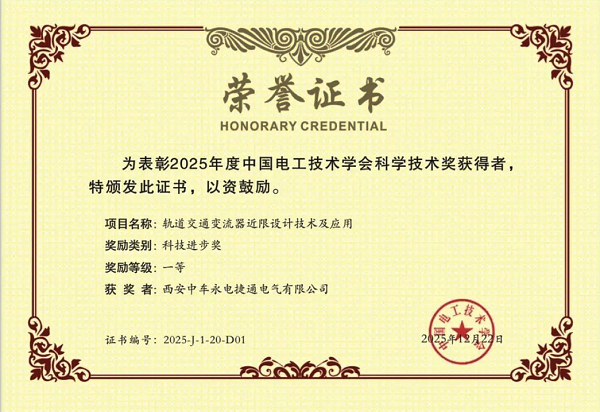 近日,由经开区企业西安中车永电捷通电气有限公司牵头,联合浙江大学、株洲中车时代电气股份有限公司、西安交通大学等单位共同完成的“轨道交通变流器近限设计技术及应用”项目,荣获2025年度中国电工技术学会科技进步一等奖。