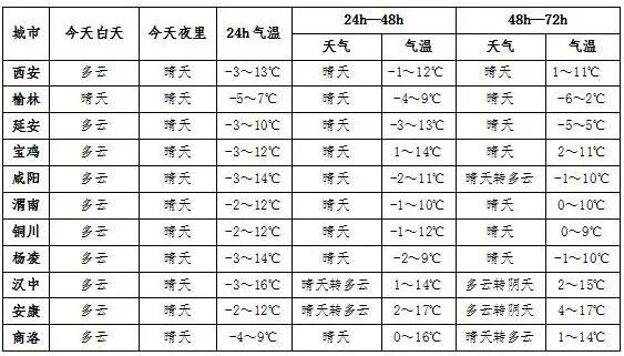 陕西主要城市天气预报