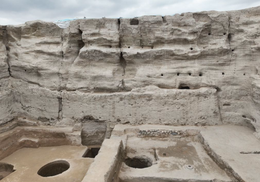 瓮城内34处遗迹的清理更添惊喜:大型房址、水井、灶址等生活遗存,与“羊角”云纹瓦当、长舌筒瓦等特色建材相映成趣,白瓷残片、礌石与动物骨骼的出土,不仅精准勾勒出中晚唐至五代的废弃年代,更首次辨识出大夏时期典型建筑材料,为民族融合史研究提供了重磅实证。而隋唐时期窑址与冶炼遗址的发现,进一步揭示了古城从都城到军事重镇的功能演变,让这座沙漠古城的历史脉络愈发清晰。