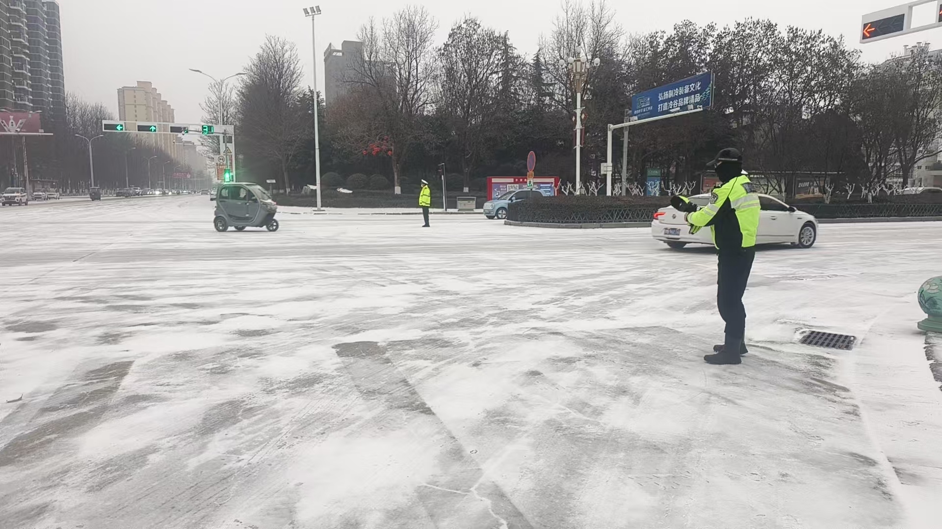 1月18日夜间至19日,商丘辖区受西南暖湿气流和强冷空气共同影响,出现大风低温雨雪冰冻天气。为预防和减少道路交通事故发生,确保道路秩序平稳、有序、通畅,商丘市公安局交警支队以雪为令,闻雪而动,迅速启动恶劣天气应急预案,组织警力到路面一线抗雨雪、保畅通,机关民辅警增援路面执勤警力。期间各级领导在岗在位,加强应急指挥调度,实时掌握辖区恶劣天气变化和道路通行情况,督促、协调做好交通应急管理工作,为过往车辆、行人保驾护航。