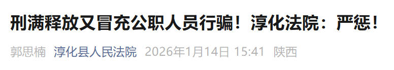 近日,陕西省太白县与淳化县人民法院相继宣判两起冒充公职人员犯罪案件,法院结合犯罪情节和社会危害性依法作出重判,并发出防范提醒。