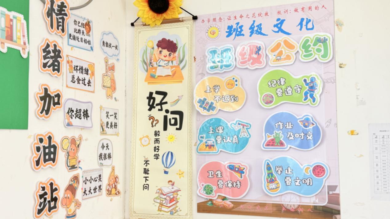 在“最美教室”评选中,各班级以“童心生花,一室一世界”为理念,将教室打造为成长天地。图书角书香与绿意交融,贴有养护人标签的绿植见证学生责任意识培育;文化墙浓缩班级精神,作品展示栏彰显学子才华;共同制定的班级公约体现自律民主,荣誉榜则记录集体奋进足迹。整洁的卫生角、创意标语与整齐课桌椅,让每面墙壁“说话”、每个角落育人,使班级文化真正扎根于心、外化于行。