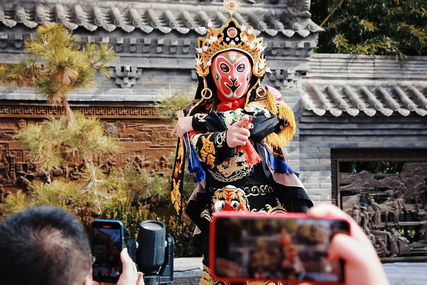 古城三庙景区化身民俗体验乐园,NPC互动玩法趣味十足。状元“六艺”体验、财神巡街送福、关羽猜酒令等特色互动,搭配糖葫芦、花灯售卖等市井场景,还原传统年味;怀旧游戏区设置蹴鞠、滚铁环等经典项目,拓印送福、鲤鱼放生祈福等活动,让游客在参与中收获满满福气;秧歌小戏、武术表演等民俗展演,为古城增添浓浓烟火气。