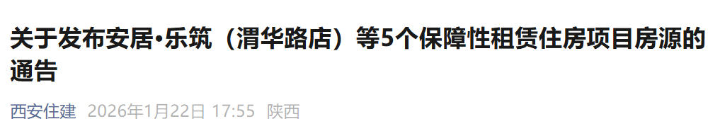 1月22日,西安市住房和城乡建设局发布通告,正式启动安居·乐筑等5个保障性租赁住房项目共432套房源的分配工作。本次报名采取网上方式进行,时间为1月23日至25日,符合条件的申请人可通过西安市住建局官网或“i西安”APP提交申请。