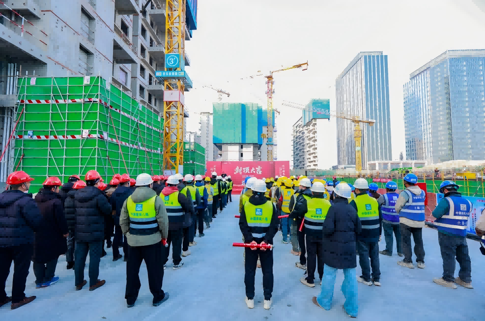 封顶仪式现场,气氛热烈。经发地产、建设单位、施工团队及监理单位的代表们齐聚工地,共同见证这一荣耀时刻。吉时一到,众人齐挥金锹,礼花瞬间绽放,掌声如雷般响起。此次3#楼主体工程的顺利完工,标志着白桦林书香项目迈入了全新的建设阶段。