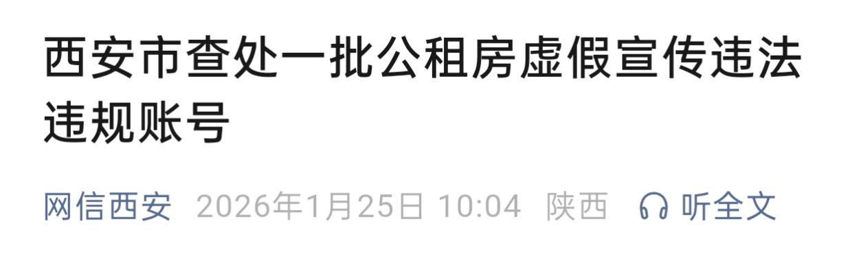 近日,西安市网信办与住建部门联合查处了一批发布公租房虚假信息的“自媒体”账号,净化网络环境。
