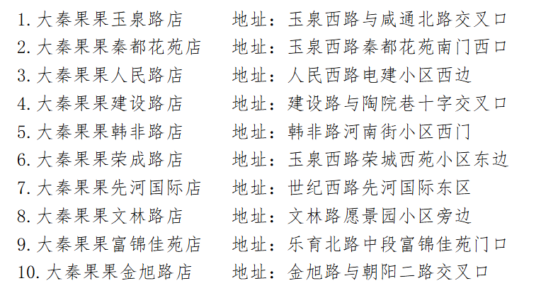 市民可在10个“大秦果果”连锁指定点位就近购买,覆盖玉泉路、人民路、建设路、文林路、金旭路等主要区域。此次投放是咸阳保障节日“菜篮子”量足价稳的重要举措。(记者 苏珊)