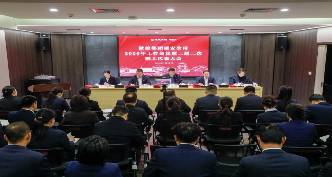 1月29日,陕旅集团延安公司召开2026年工作会议暨二届二次职工代表大会。延安公司领导班子成员,各部门、各中心和下属企业部门负责人以上管理人员及职工代表参加。会议由党委委员李陇安主持。