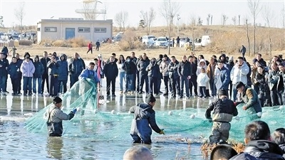 据活动负责人介绍,自湖面结冰以来,在确保安全的前提下,已累计接待游客超过2万人次。其中,元旦假期期间举办的“冬捕节”单日吸引近2000人前来游玩,成为当地冬季旅游的一大亮点。