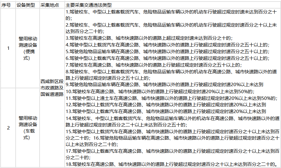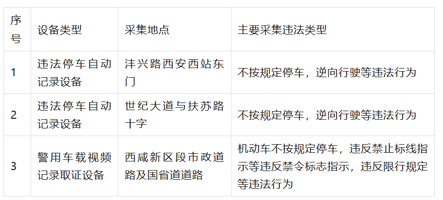此次新增设备主要分为违法停车自动记录设备和流动测速设备。其中,违法停车抓拍点位设置在沣兴路西安西站东门、世纪大道与扶苏路十字等交通繁忙区域,主要针对不按规定停车、逆向行驶等违法行为。同时,警用车载视频记录取证设备及移动测速设备将在西咸新区段市政道路及国省道道路全时段不定时抓拍,重点查处超速、违反禁令标志指示等行为。