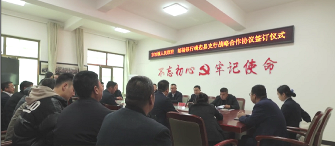 2月10日,榆林市靖边县东坑镇镇政府与中国邮政储蓄银行靖边县支行举行战略合作协议签约仪式。邮储银行、镇政府相关负责人以及当地的小微企业、农户代表参加活动。