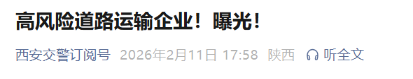 2月11日,西安交警发布信息:根据大数据分析研判,对2025年11月至12月西安市被评定为高风险的13家重点道路运输企业进行曝光。