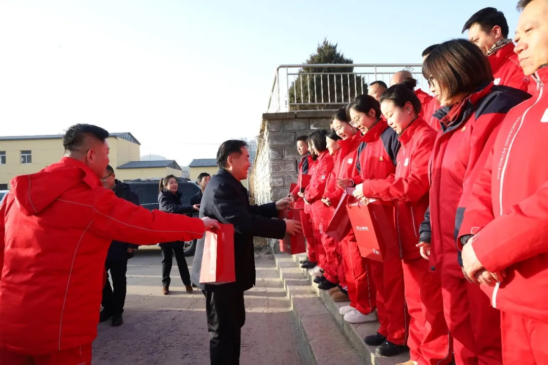 在河庄坪采油队,寇明灵一行到生产现场,听取节日期间安全生产、环保管控、值班值守等工作汇报,现场检查相关部署落实情况,要求全体人员坚守安全环保底线,抓实隐患排查治理,保障节日期间生产平稳运行,并为一线职工发放护手霜、水杯、烧水器等慰问物资,将关怀落到实处。同时,为荣获油田公司“最美家庭”的3户代表颁发荣誉奖杯,鼓励受到表彰的家庭珍惜荣誉、再接再厉,展现真善美、弘扬正能量。