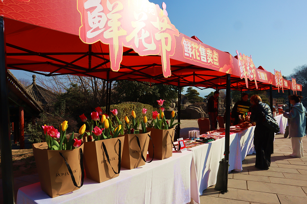 在郁金香花市,也有不少游客正在认真挑选心怡的鲜花,想要将中国唐苑这一缕春意带回家,将盎然春意与吉祥祝福带回家。