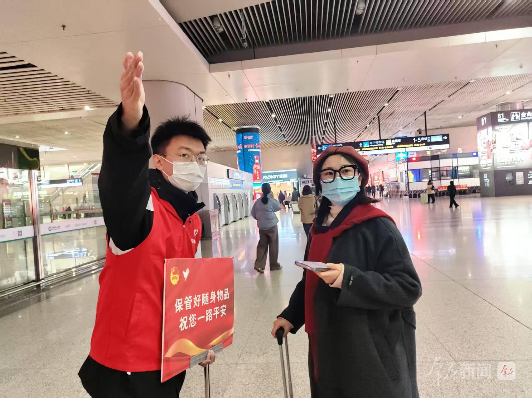2月15日至23日,青年志愿者在西安火车站开展“心诚·乐途途”暨“春节我在岗温暖回家路”春运志愿服务活动,为旅客提供方向指引、查询协助等春运暖心服务,并帮扶老、幼、病、残、孕等重点旅客。