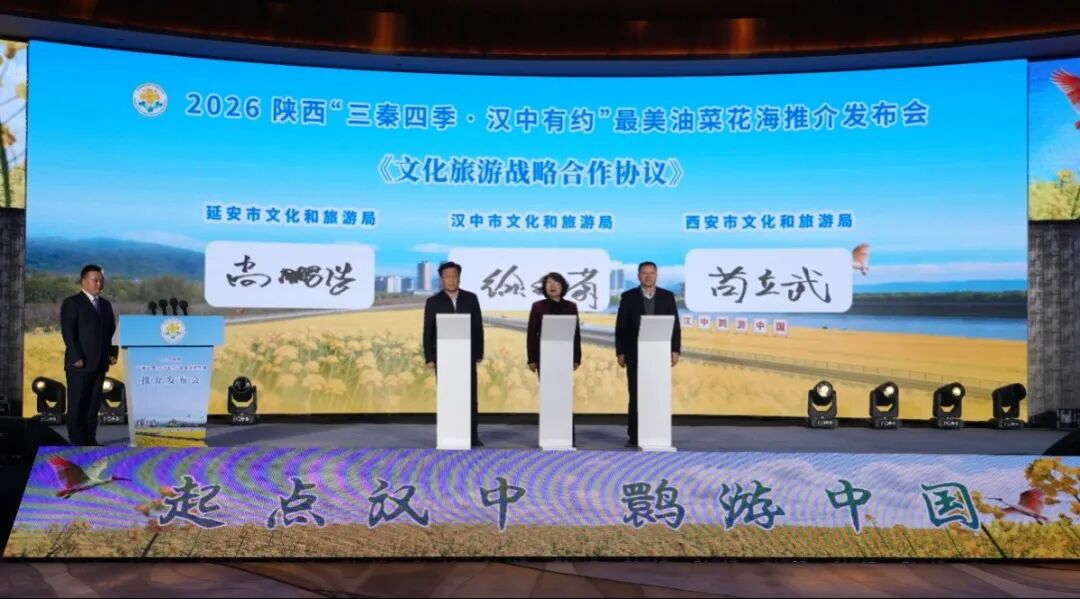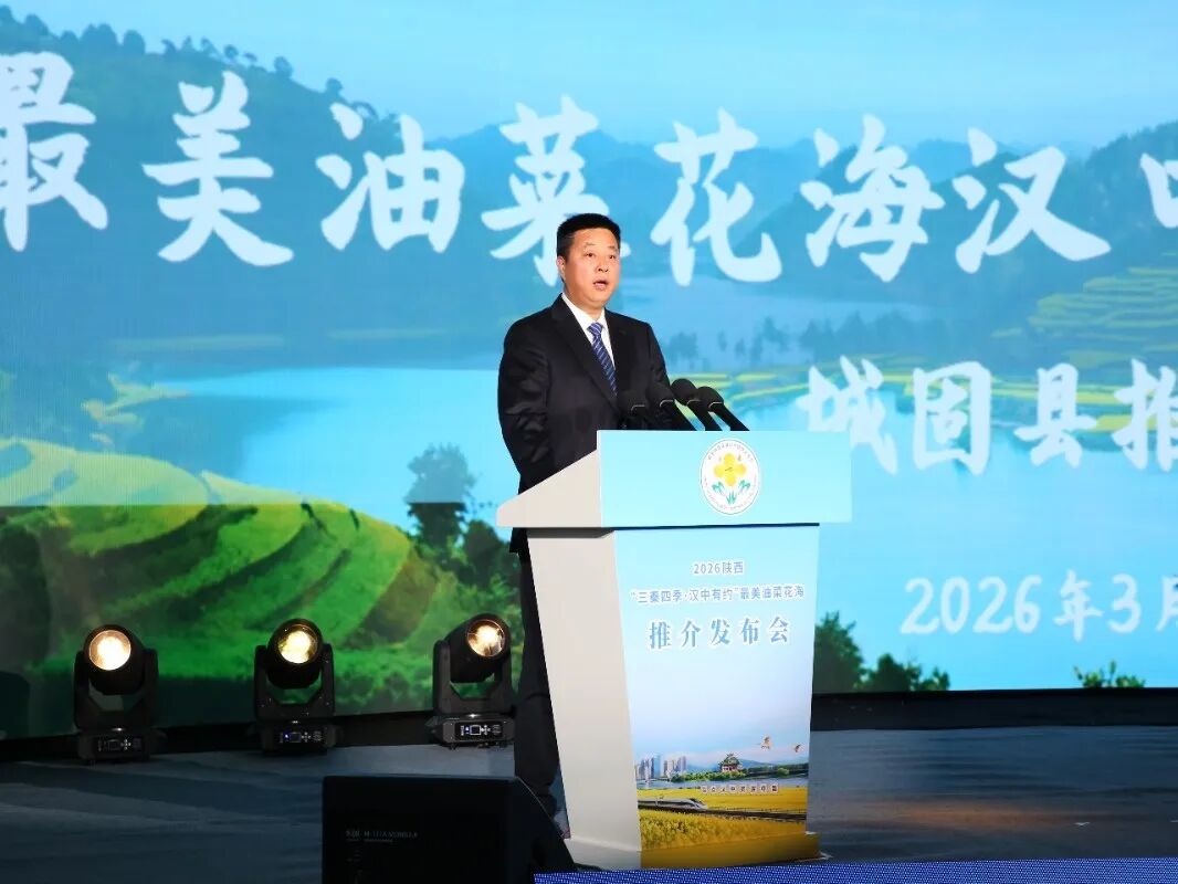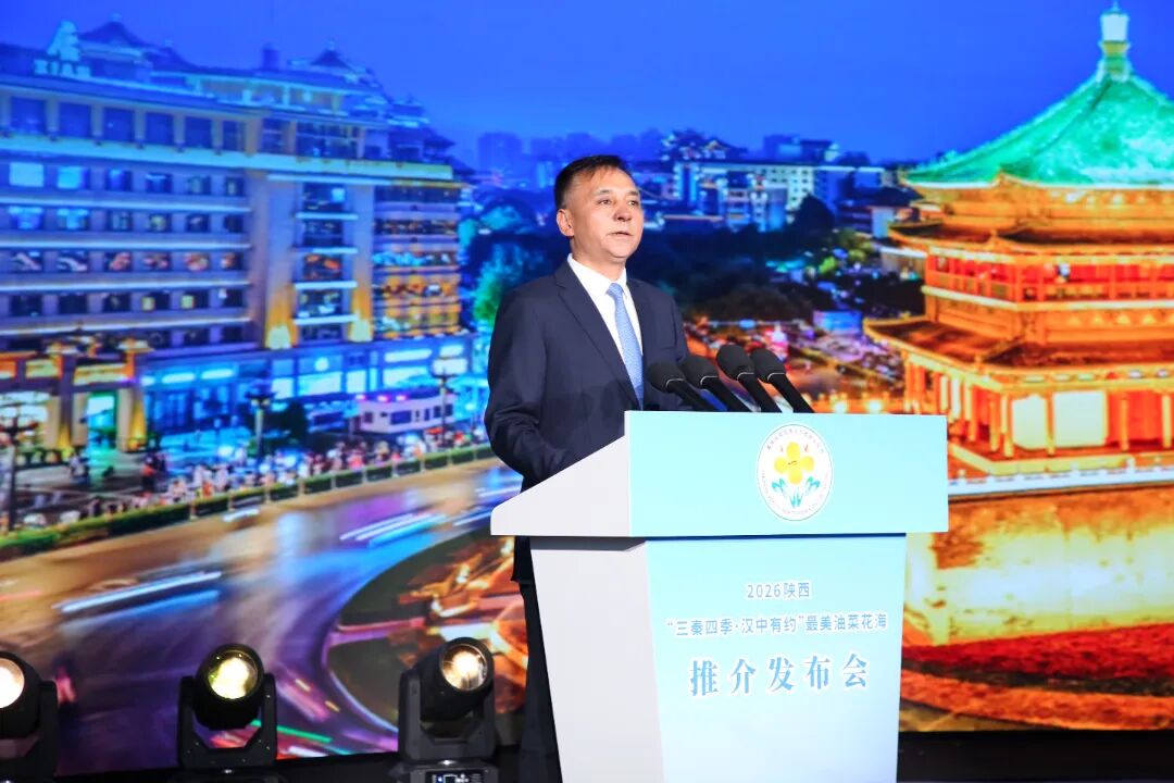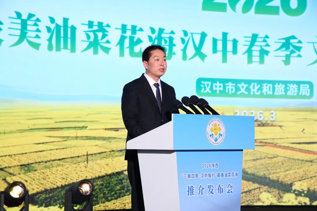 秦巴泼墨千峰翠,天汉鎏金花如海。3月6日,2026陕西“三秦四季·汉中有约”最美油菜花海推介发布会在西安举行,向八方宾朋发出“畅游金色花海、品味汉风古韵”的春日邀约。陕西省文化和旅游厅二级巡视员谭佳峰、汉中市人民政府副市长李宽出席活动。