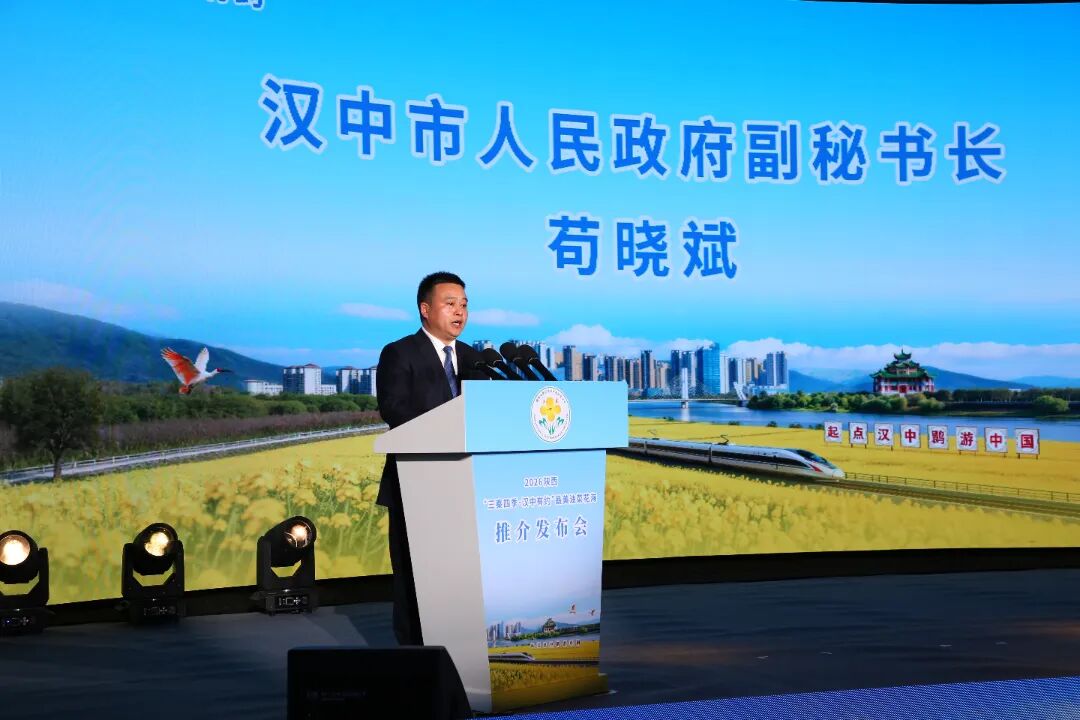 推介发布会上,汉中市文化和旅游局发布了2026年最美油菜花海汉中春季文化旅游季总体情况及“引客入汉”系列优惠政策;汉中市交通运输局介绍了航旅、铁旅等综合交通网络保障情况;汉台区人民政府发布了2026最美油菜花海汉中春季文化旅游季汉台区系列活动。南郑区、城固县、西乡县、宁强县及皇塘水乡、龙头山、华阳、紫柏山等重点景区,分别作了文化旅游资源推介。