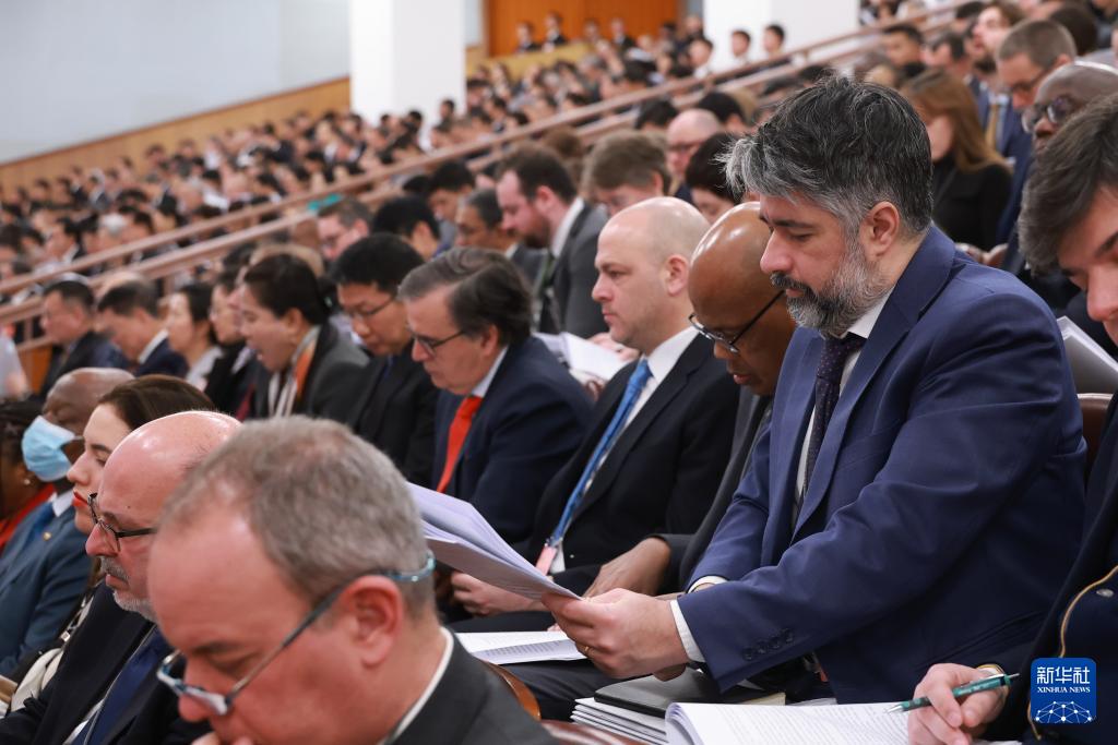 3月5日上午,第十四届全国人民代表大会第四次会议在北京人民大会堂开幕。这是外国驻华使节旁听大会。新华社记者 刘彬 摄