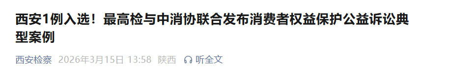 3月15日,最高检与中消协联合发布消费者权益保护公益诉讼典型案例,西安市检察院办理的一起“天价蛋白粉”案入选。