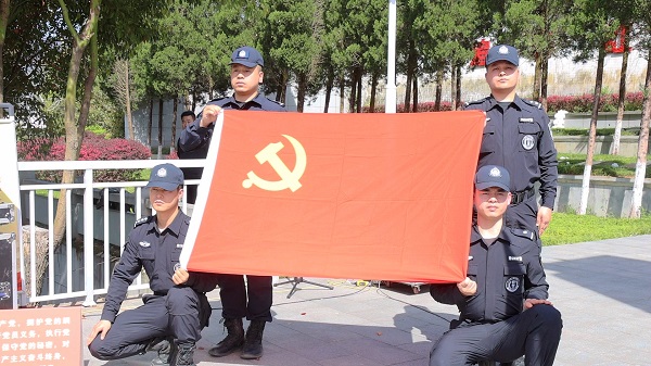 “我志愿加入中国共产党,拥护党的纲领,遵守党的章程……。”面对鲜红的党旗,全体党员民辅警整齐列队,高举右拳,政工室主任吕勇带领全体民辅警重温入党誓词。誓词铿锵,字字千钧、触动灵魂,激励着党员民辅警进一步坚定对党忠诚、服务人民、执法公正、纪律严明的从警初心与使命担当。