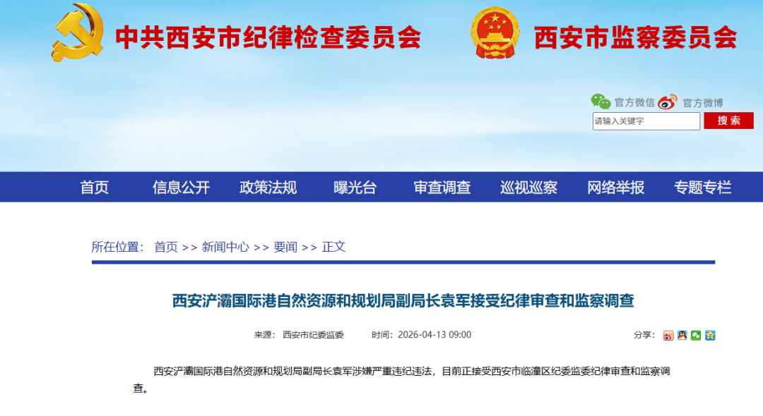 西安浐灞国际港自然资源和规划局副局长袁军涉嫌严重违纪违法,目前正接受西安市临潼区纪委监委纪律审查和监察调查。
