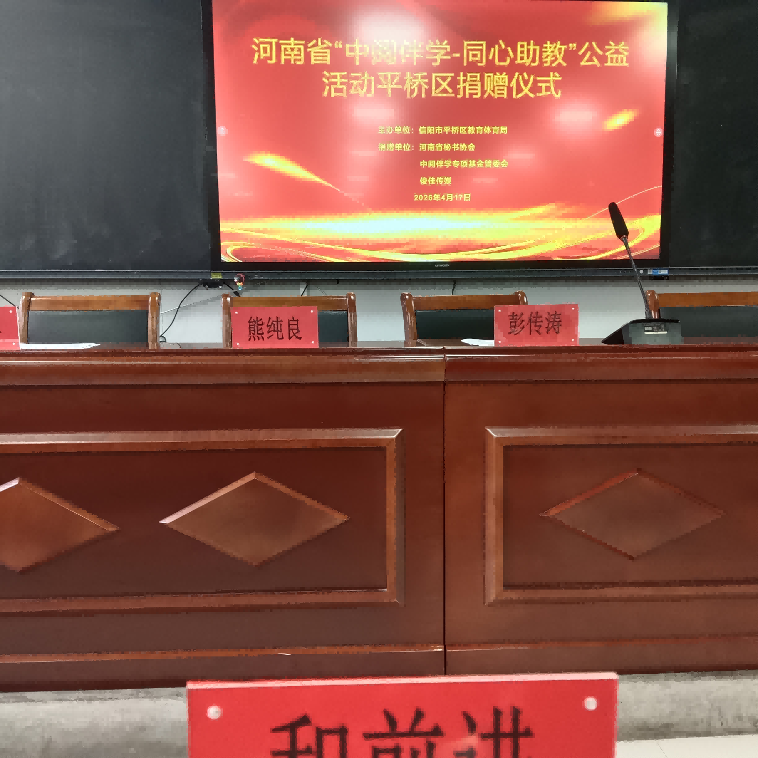 2026年4月17日上午,平桥区教育体育局(以下简称“平桥教体局”)携手河南省秘书协会及中阅伴学专项基金管委会,在平桥中学多媒体功能室共同举办了“中阅伴学-科技助教”公益捐赠活动。此次活动旨在积极响应国家教育政策,进一步优化区域教育资源,推动教育公平与质量提升,充分展现了平桥教体局在教育公益领域的引领作用。