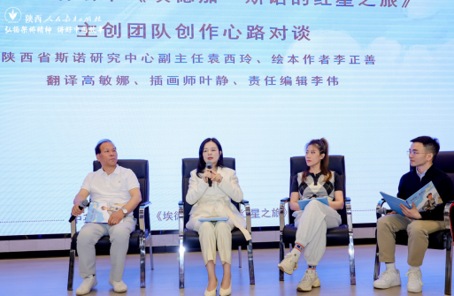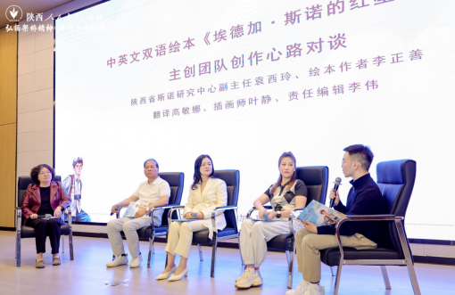 在陕西省斯诺研究中心副主任、西北大学副教授袁西玲主持的对谈环节,作者李正善从处理好史实真实与适度创作的关系、处理好这本绘本与《海伦·斯诺在中国》内容重复的关系、处理好宏大叙事与少儿视角的关系等三方面,回顾了创作背景和创作过程。他说,包括斯诺夫妇在内的国际友人的研究著作不少,作为一名记者和作家,要发挥个人所长,以更多更新更易为青少年所接受的形式来形成国际友人精神的传播矩阵,更加生动形象地把专家们的研究成果表现出来。他通过走访北京、西安等多处纪念地,多遍精读《红星照耀中国》原著以及尹均生与安危先生合著的《斯诺》、苏菲所著《我的丈夫马海德》,以及斯诺第二任妻子洛伊丝著作《斯诺眼里的中国》等二十多本著作,观看有关影视作品,从中了解斯诺的人生成长和冒险经历,突出其奔赴陕北的详细经过,选择适合少儿阅读的、能够体现其理想和精神的故事和细节,追求绘本故事的趣味性和可读性。“为了防止读者对这本书形成概念化的误读,创作之初我就把它定位为‘一个美国孩子的成长史,一个伟大人物的历险记’。在创作中不断提醒自己,千万要注意避免说教,避免概念化描述,而是通过一个个具体实在的成长冒险故事,让读者能够读出正是独立思考的精神和眼见为实的自我要求的原则,促成了埃德加·斯诺从一名好奇心强、喜欢冒险的孩童,最终成长为一名举世闻名的记者作家。”