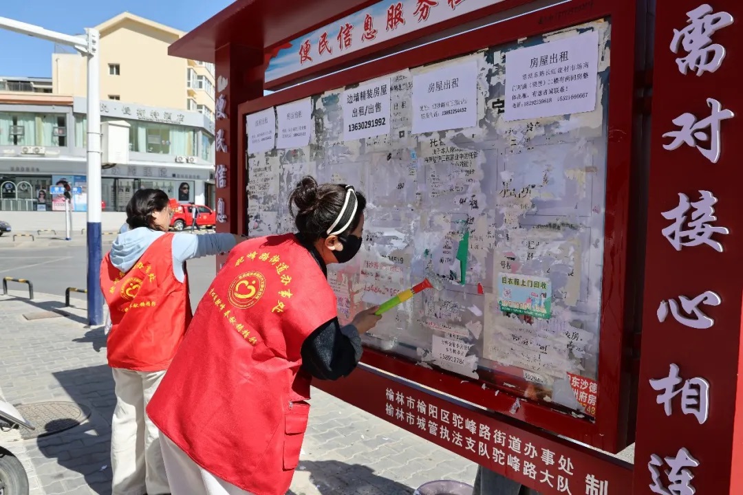 不仅如此,驼峰路街道还针对辖区内野广告乱贴乱画问题,以桃源路社区为试点,统一设计、科学布置“便民信息服务栏”54块,引导居民有序张贴、规范张贴。同时,充分发动800余名“五级五长”、党员志愿者、居民群众随手拍反映问题,确保及时发现死角盲区并清理清洁,让群众成为基层治理的主力军,实现了环境整治与自治能力双提升。