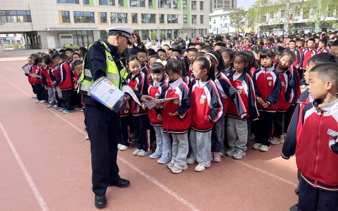 4月27日,城区二中队走进辖区城关小学,利用学校举行升国旗仪式的有利时机,组织全校师生开展了“红旗下的讲话”主题宣讲活动。民警紧扣少年儿童的年龄特征和上下学出行方式,深入浅出地科普未成年人安全骑乘、“一盔一带”等法律法规知识,讲解“闯灯族”“飙车族”“鬼探头”等常见交通陋习危害,引导同学们要正确认知出行活动中的“对”“错”与“美”“丑”,争做遵法守规少年,让安全相伴上学路。