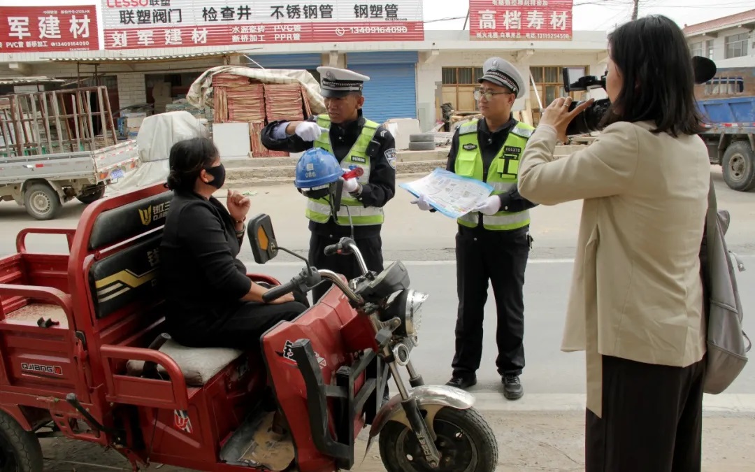 4月24日,大队抽调响水、芦草梁两中队精干警力,携手榆林传媒中心,在辖区响水镇富源村出村入镇主要路口,开展了一场声势与温度并存的交通违法大整治大宣教活动。民警在查处酒驾醉驾、超员超载、客货混装、农用车违法载人及骑乘摩托车不佩戴安全头盔等交通违法的同时,针对部分驾驶人存在的轻微违法行为,民警本着“轻处罚重教育”的原则,借助展板和彩页向群众一对一讲案例、说危害,让违法驾驶人在媒体镜头前事对事谈认识、发呼吁,引导群众谨记事故教训,树牢安全意识,文明守法出行。