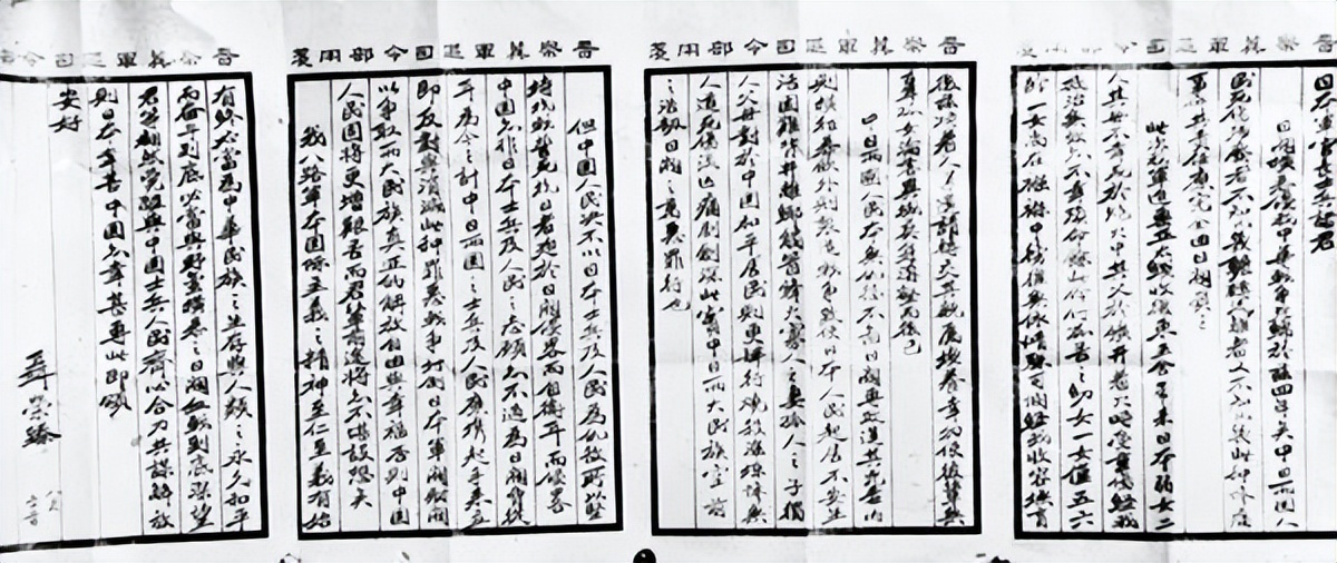 聂荣臻亲笔写了一封信,共600余字,字字千钧。信中写道:“我八路军本国际主义之精神,至仁至义,有始有终,必当为中华民族之生存与人类之永久和平而奋斗到底,必当与野蛮横暴之日阀血战到底。深望君等幡然觉醒,与中国士兵人民齐心合力,共谋解放,则日本幸甚,中国亦幸甚。”