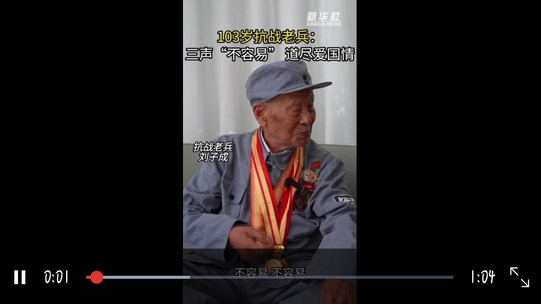 103岁抗战老兵:三声“不容易” 道尽爱国情