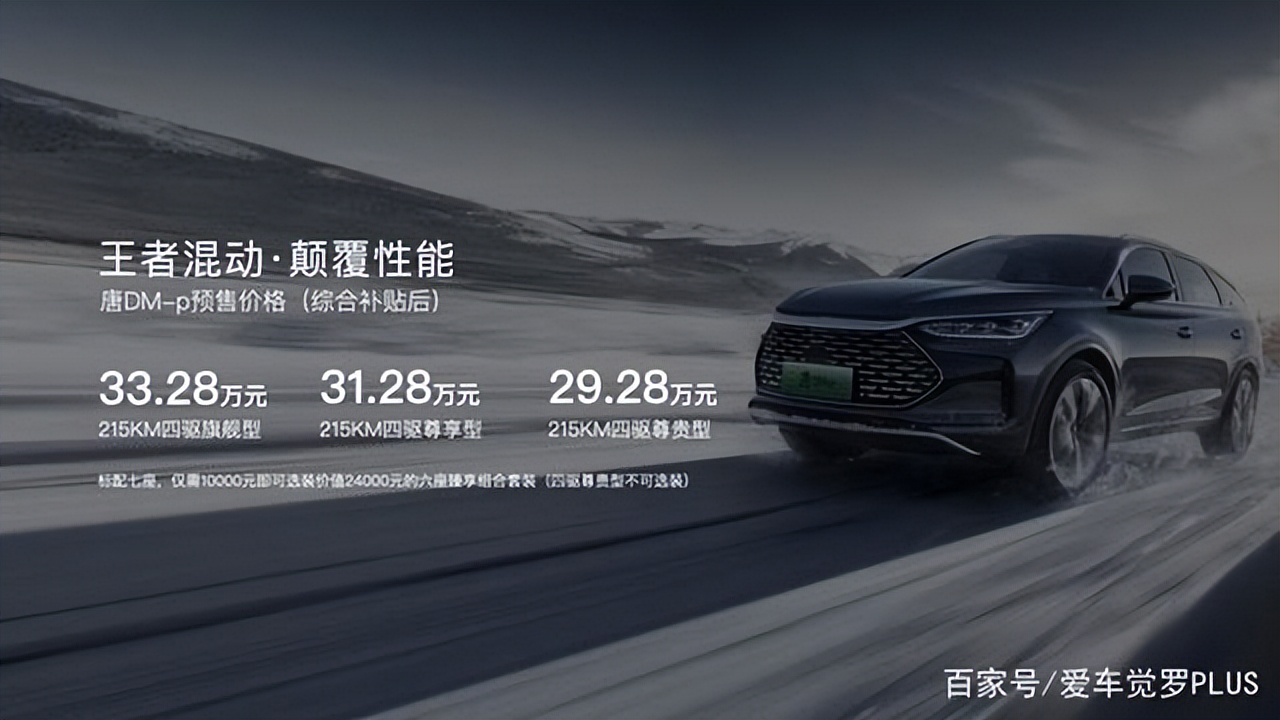 6月9日,比亚迪DM-p王者混动暨唐DM-p预售发布会正式开启,DM-p王者混动重磅发布。唐DM-p综合补贴后预售价格为29.28万元-33.28万元,此外,唐DM-i 252KM尊享型预售也同步启动,综合补贴后预售价格为 28.28万元。