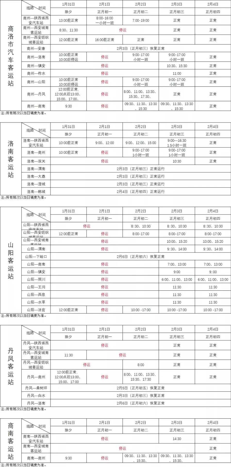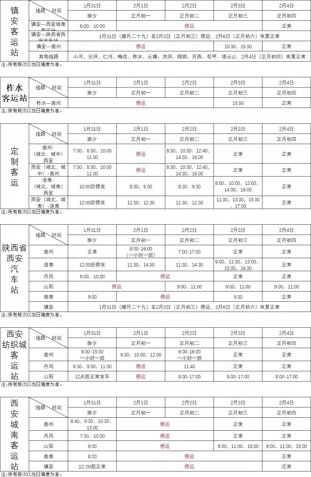 春节期间 商洛客运站公布班次时刻表
