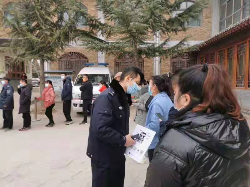 疫情防控期间,陈炉派出所民警充分发挥公安机关在疫情防控中的职能作用,在核酸采样点积极维护秩序,确保采样进展的同时,趁着人员有序排队的空挡,展开宣传推广、安装注册“国家反诈中心APP”工作,不放弃任何一个可以宣传的机会,全力以赴保护好人民群众财产安全。