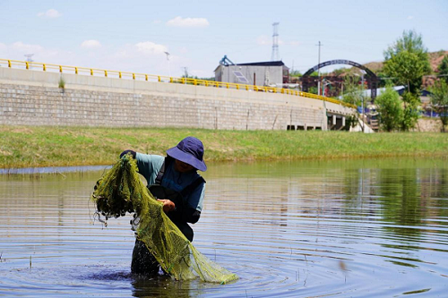 “山上种菜养羊,山下利用芦河涓涓细流做水产文章。今年,横山县塔湾镇引进水产养殖企业利用芦河优质水源,试养殖小龙虾,以点带面培育新的产业模式。在芦河两岸滩涂地,经过25天的生长,试养的小龙虾张牙舞爪,长势喜人。”旭毅水产养殖负责人李学康说。