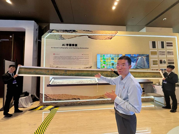 在AI字画修复展区,人工智能技术正广泛应用于古籍、古画的高精度识别与动态复原,大量原本模糊不清、局部破损的文献与图像实现细节重现。该展区负责人在接受采访时表示:“我们依托智能处理系统,极大提升了修复工作的效率与精度,更重要的是实现了文化遗产的‘活化’再现——不仅看得清、可触摸,更能被深入解读,也让文物保护与文化传承变得更加立体、可持续”。