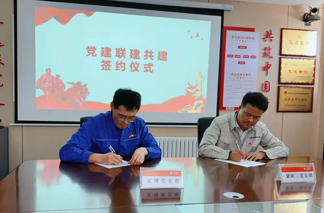 活动现场,全体党员肃立,高唱国歌,激昂的旋律里满是扎根靖边、建设家乡的赤诚;党员们举起右拳重温入党誓词,铿锵誓言不仅唤醒了每一位党员的初心与使命,更凝聚起双方协同推进靖边风电项目的强大决心。双方正式签署党建联建共建协议,标志着两家单位在靖边风电项目建设中,开启“党建引领、业务协同、优势互补”的合作新篇章。