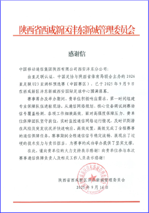 陕西移动西安分公司:以通信之力,护航绿茵精彩