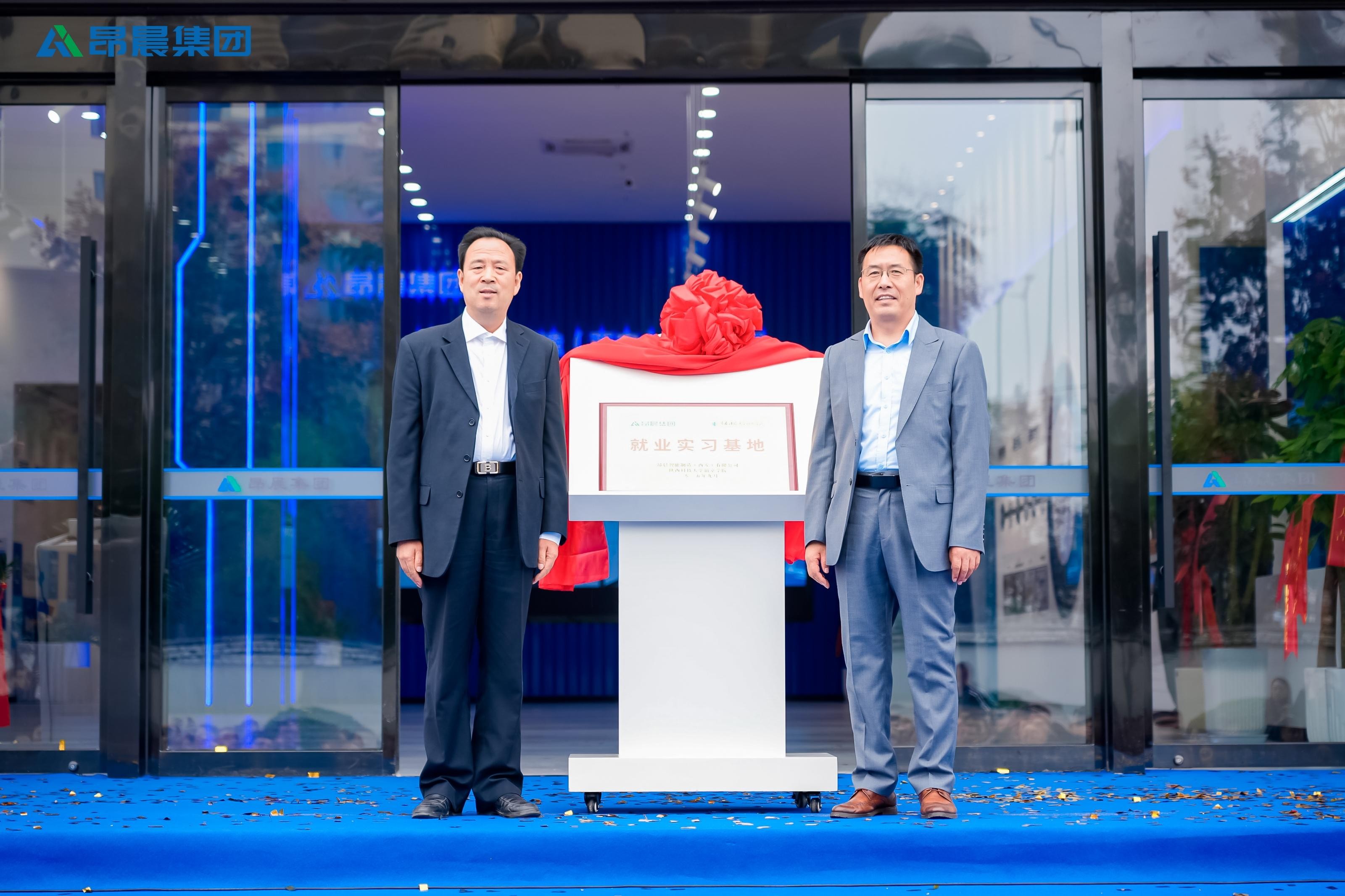 随后举行的“大学生就业实习基地”揭牌仪式,将现场氛围再次推向高潮。陕西科技大学镐京学院副校长李宗领与昂晨智能制造(西安)有限公司副总经理张泽军共同为基地揭牌,标志着双方校企合作进入实质推进阶段。该基地将搭建起“人才培养—技术转化”的双向桥梁,为智能制造领域持续输送专业人才。