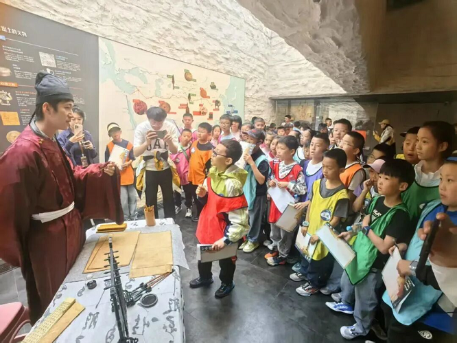 走进统万城博物馆,5位身着古装的NPC化身为“时空引路人”,带领游客开启一场跨越千年的历史穿梭。从清末考古现场的文物探幽,到赫连勃勃建立大夏王朝的壮阔场景,NPC通过趣味问答解锁“隐藏知识点”,原本冰冷的文物与遥远的历史,在互动中变得鲜活可感。