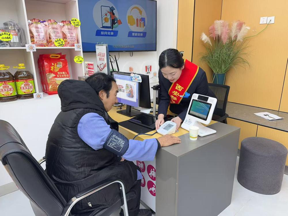 “阿姨您看,点‘陕西移动’APP,再选‘我的话费’就能看余额了。”工作人员董亚莉手把手带老人操作。从微信发语音、扫码缴水电费,每项操作都拆解成“三步走”,反复演示至老人能独立完成。课堂间隙,工作人员用电子血压计为老人测血压,贴心叮嘱健康注意事项,让老人倍感温暖。