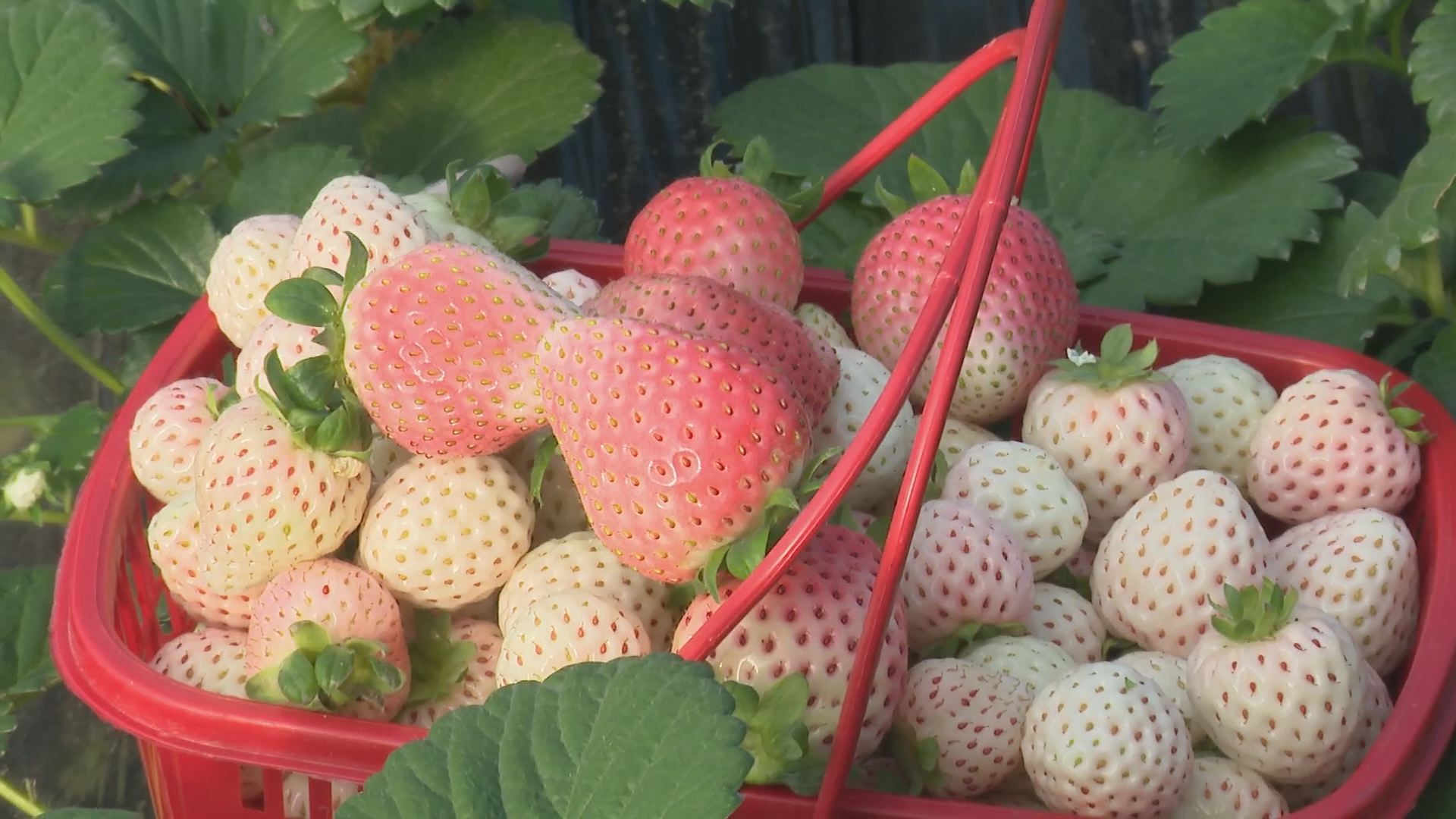 草莓采摘园老板梁茜说:“今年草莓比往年上市整整迟了一个礼拜,今年草莓新增了两个品种,一个是粉玉,一个是月雪飞,总体情况还行,比往年的价格稍微高点,采摘价在50元到60元,我今年总共种了11个大棚,刚上市成熟了两个棚可以卖,其余的还在盛果期。”