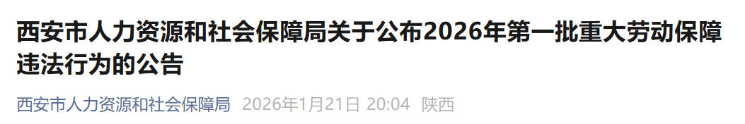 西安公布2026年首批重大劳动保障违法案件