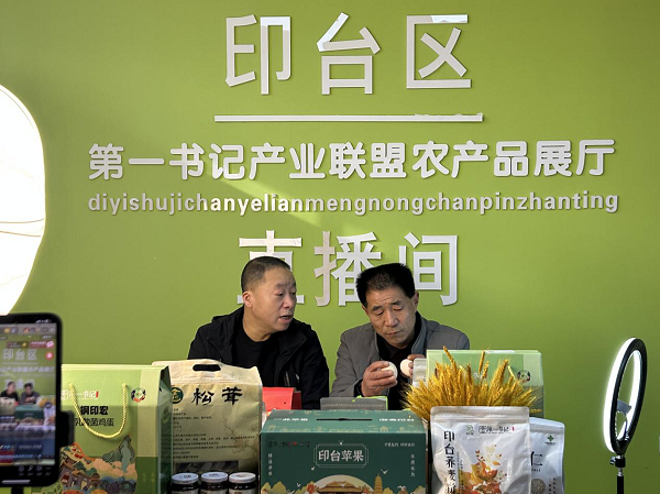 除了田间地头,联盟还设立了固定直播间,轮番推介全区优质农产品。阿庄镇湫洼村驻村第一书记丁晓峰与村党支部书记王学忠搭档,在镜头前详细介绍乳酸菌鸡蛋、印台苹果、荞麦饸饹等特色年货。“春节是传递温情的时刻,我们也希望通过直播,把家乡风味带给更多人,助力乡村振兴。”丁晓峰说。