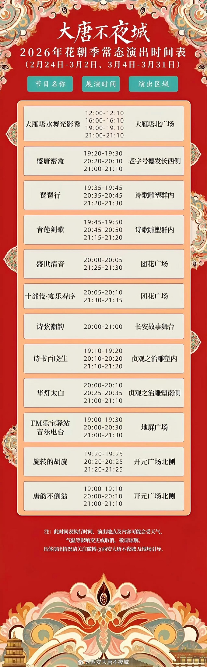 西安大唐不夜城花朝季演出表出炉,持续到3月底