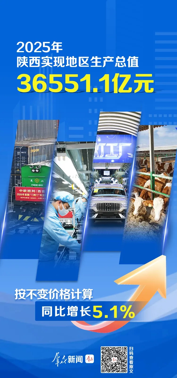 1月22日,陕西省统计局发布2025年陕西经济运行情况:全省实现地区生产总值36551.1亿元,按不变价格计算,同比增长5.1%。